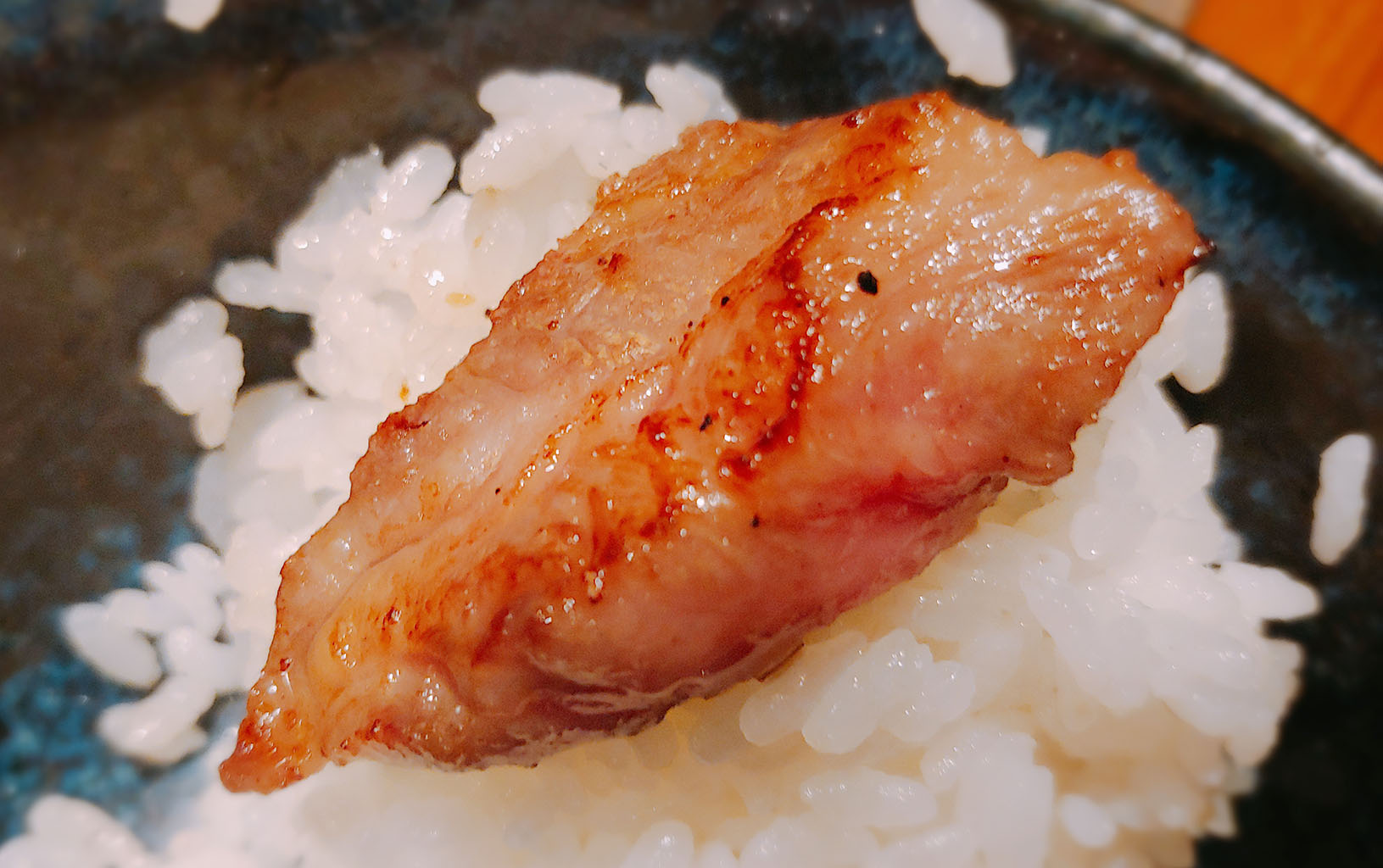 앞뒤로 살짝 구어 새하얀 밥에 살그머니 올려 먹으니. 하아...... 너무나 부드러운 조직에서 순식간에 기름과 육즙이 흘러나와 혀가 황홀해집니다. 너무 부드러워 씹는 것조차 아깝습니다.