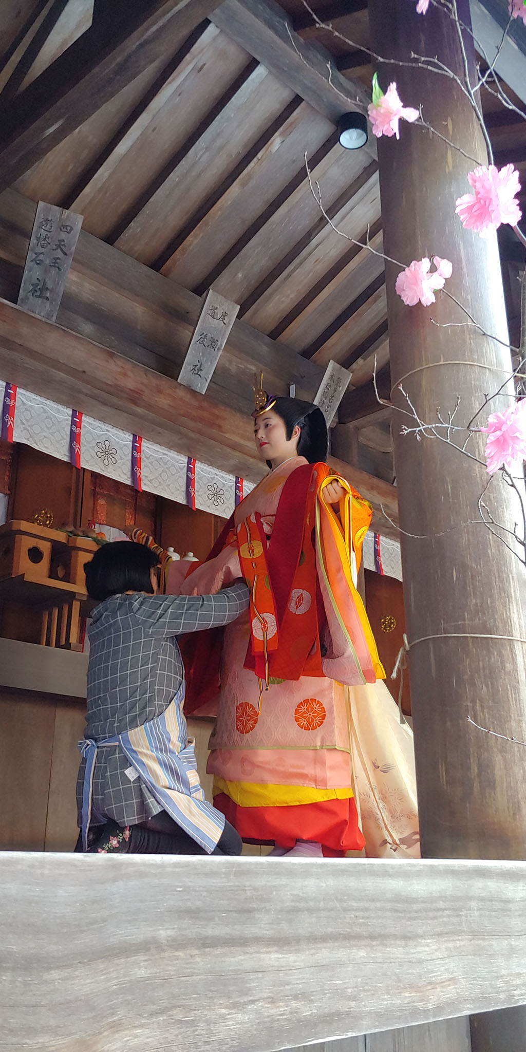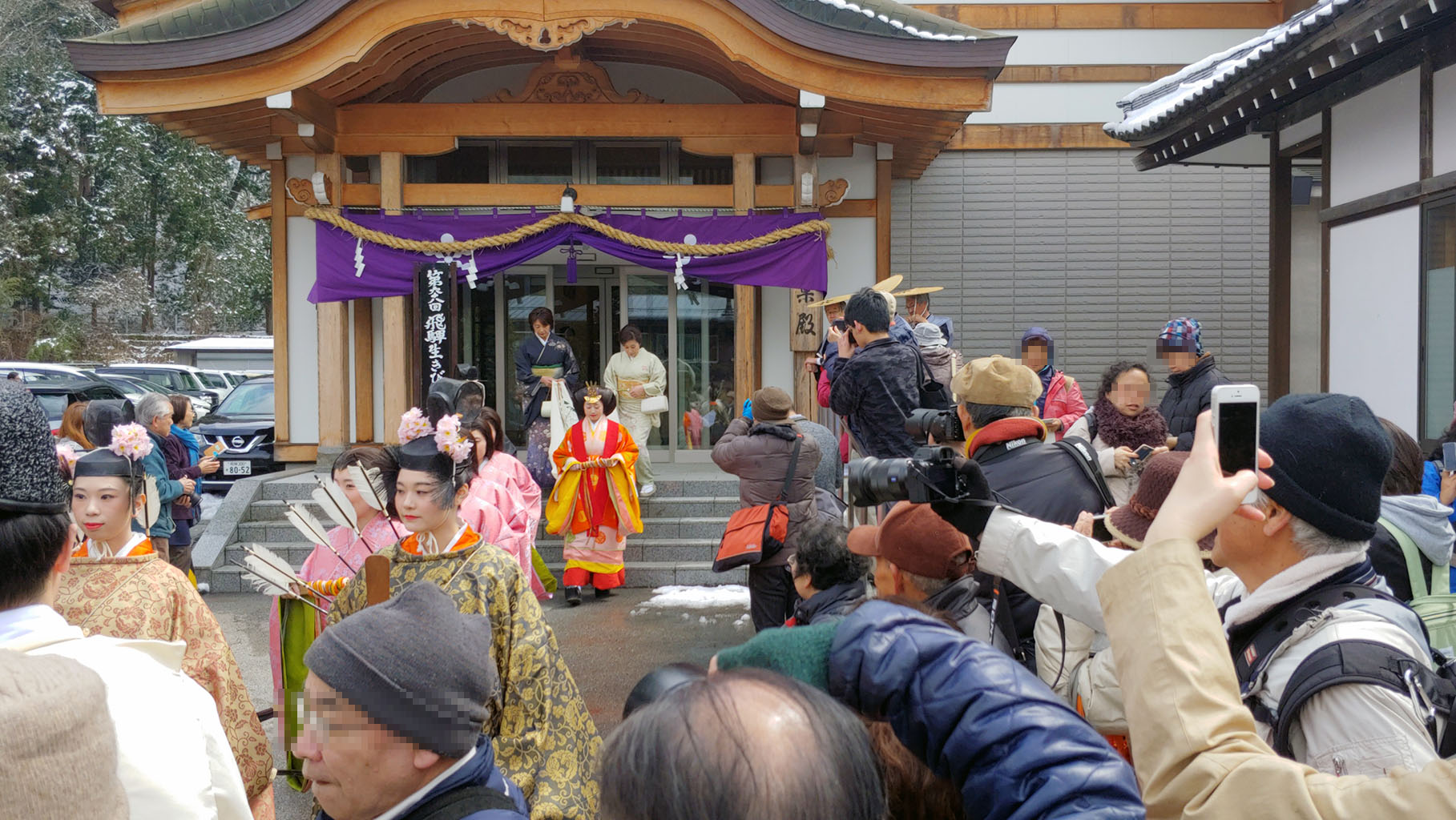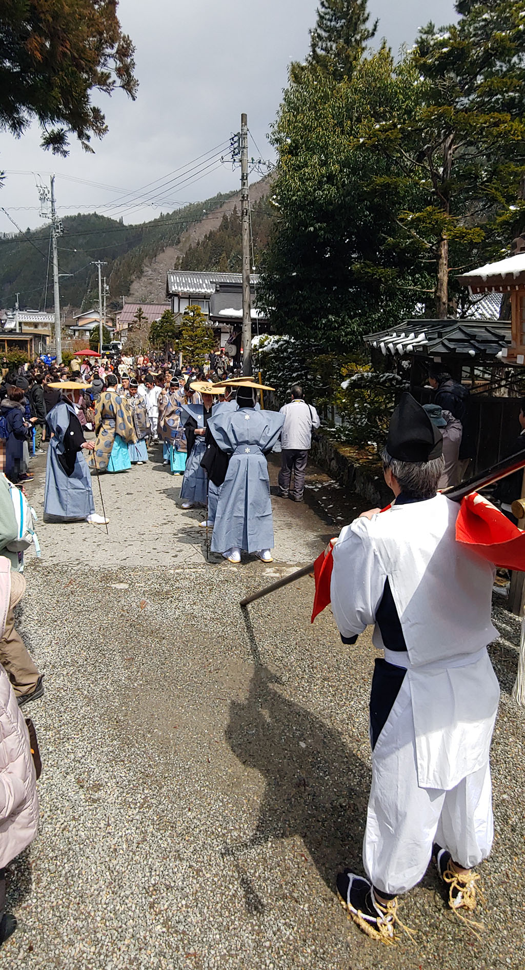 신사에 들어와 행렬에 흐트러진 몸가짐을 정리하고 본전 안으로 들어가 분장한 어린아이들과 부모님들이 함께 불결함을 씻어내는 의식을 진행하러 가며 이키비나 행렬을 끝이 납니다. 안쪽에서 뭘 하는지는 볼 수 없어 이제 돌아가 볼까 합니다.