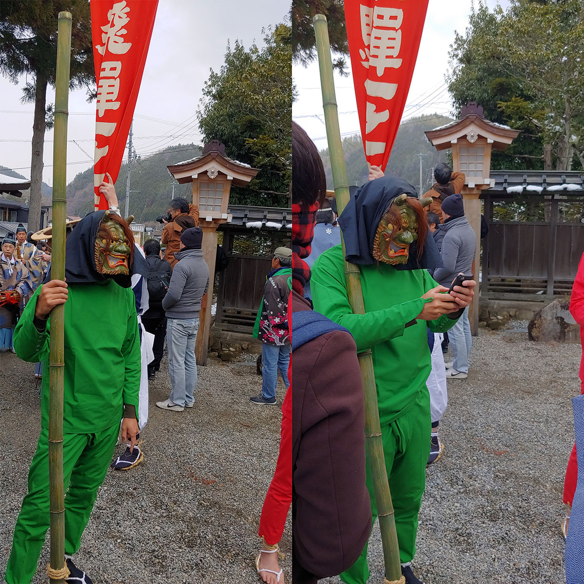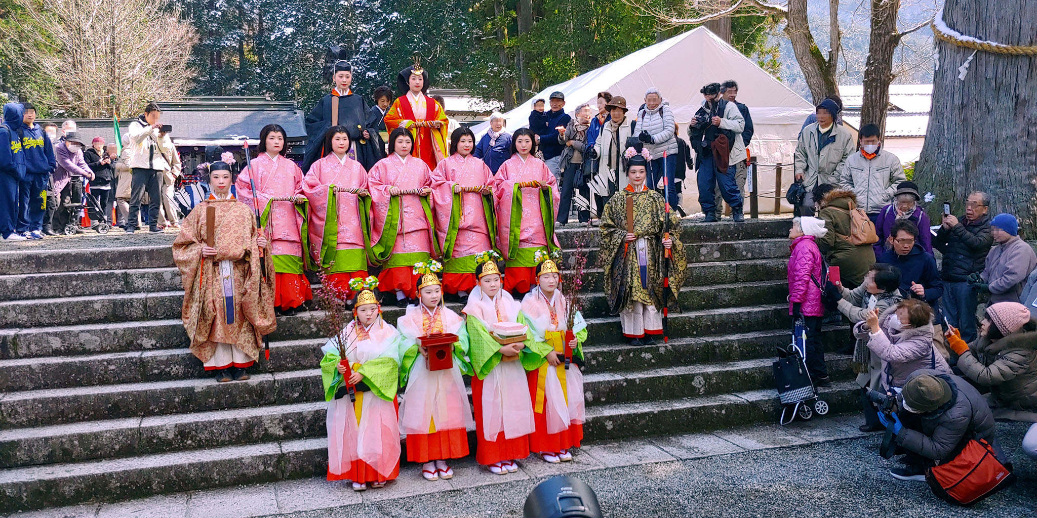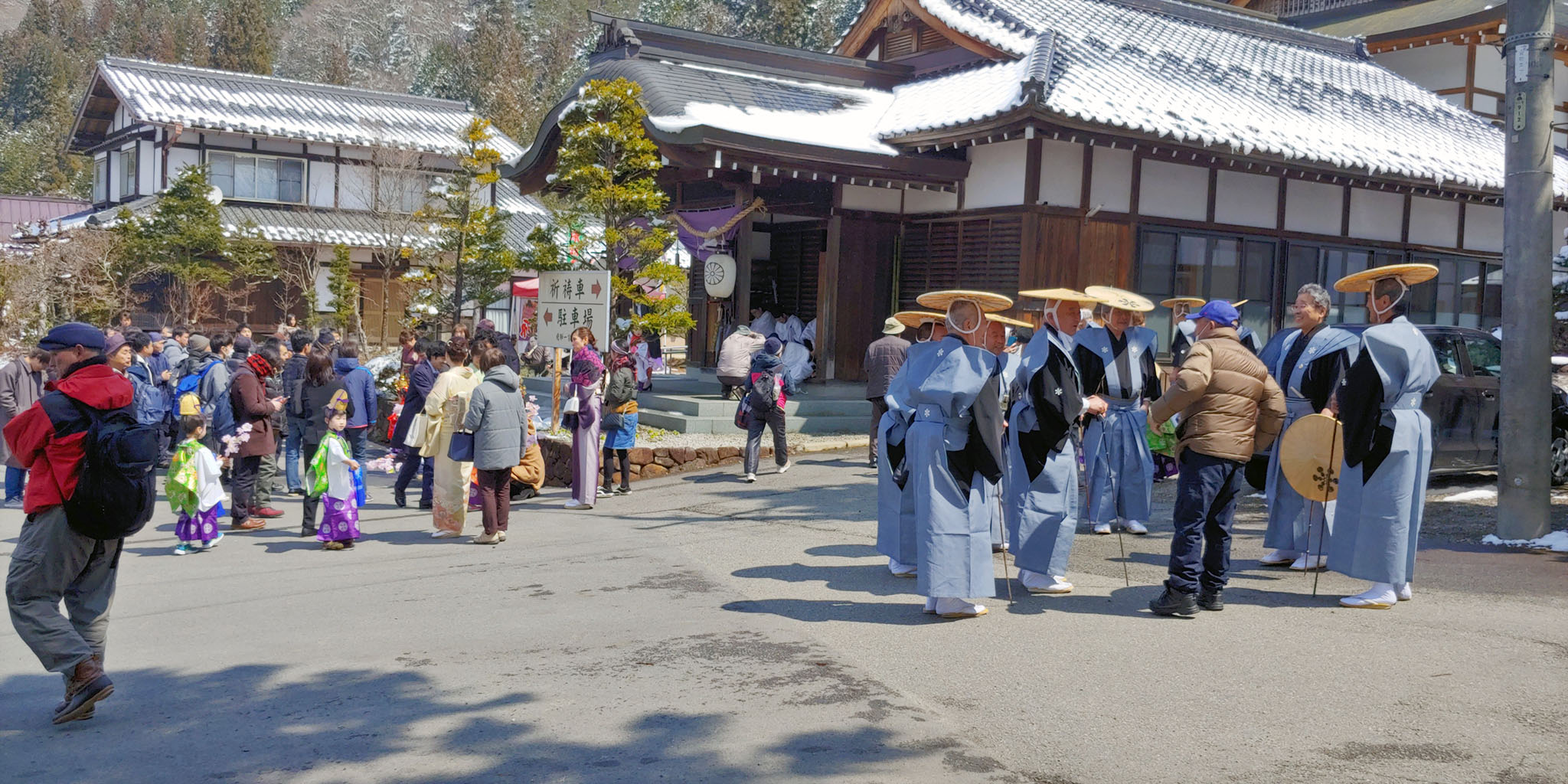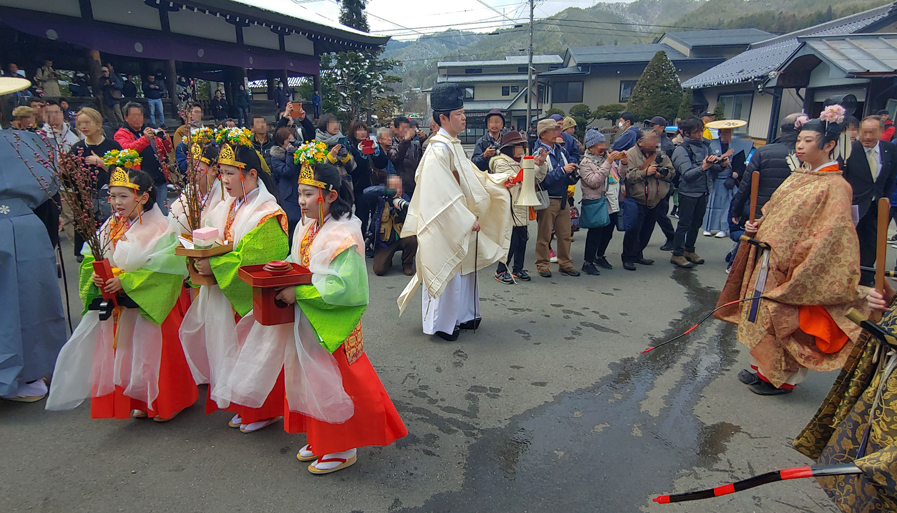 신사에 들어와 행렬에 흐트러진 몸가짐을 정리하고 본전 안으로 들어가 분장한 어린아이들과 부모님들이 함께 불결함을 씻어내는 의식을 진행하러 가며 이키비나 행렬을 끝이 납니다. 안쪽에서 뭘 하는지는 볼 수 없어 이제 돌아가 볼까 합니다.