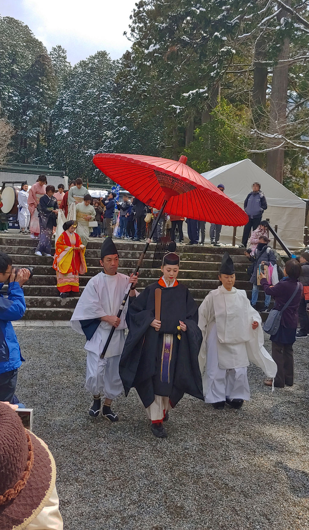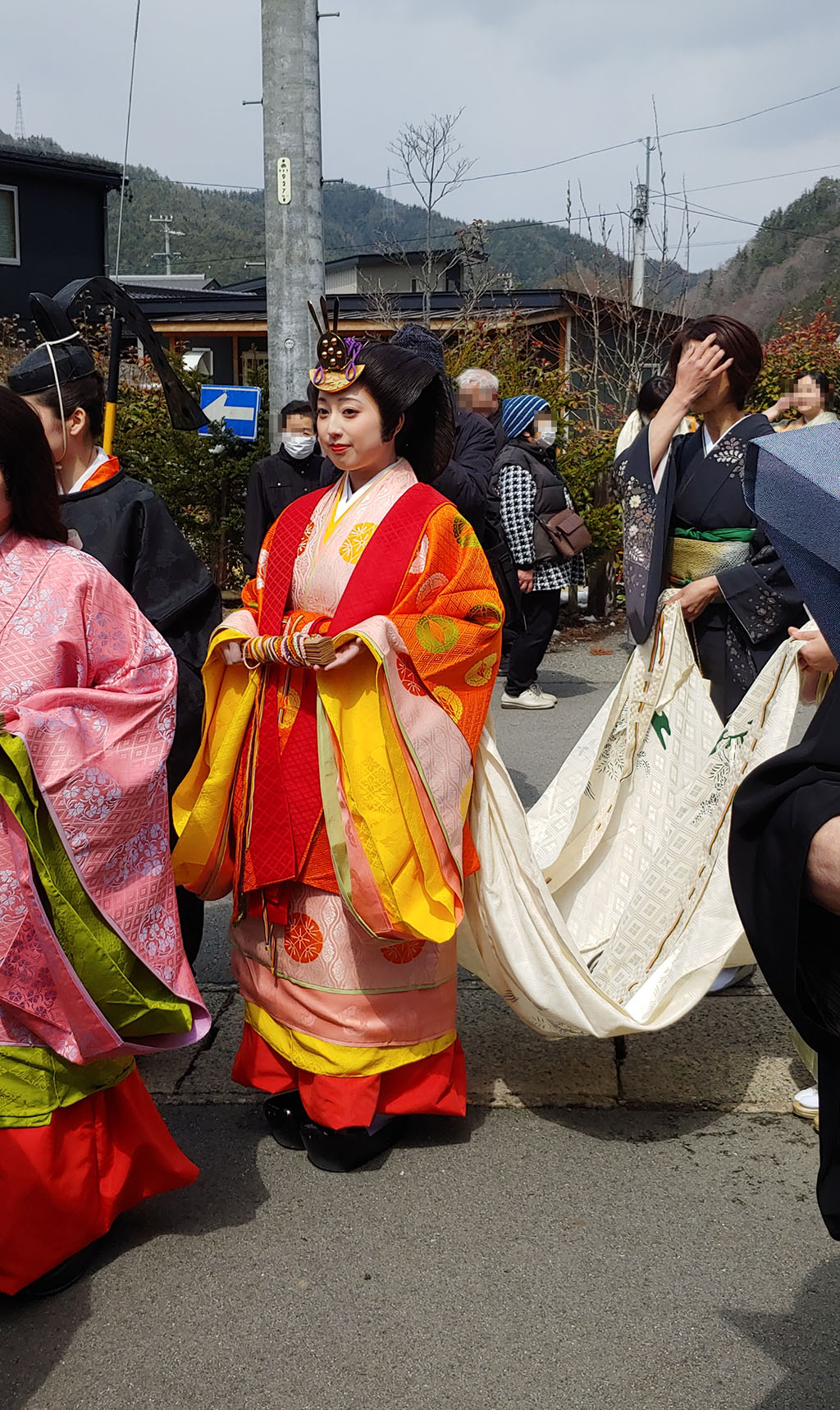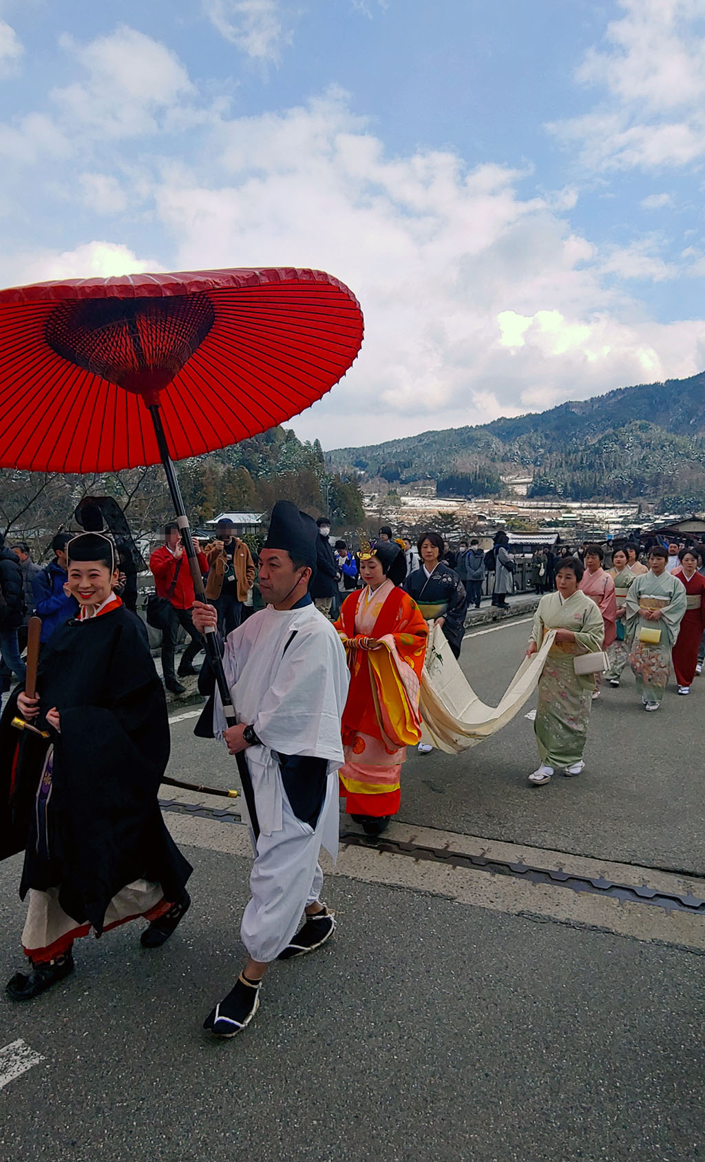 그런데 이키비나 말고도 이 앞장선 검은 옷을 입으신 분도 꽤 한 미모하고 계십니다. 검은 옷을 입은 오비나 역은 히나 인형에서 일왕에 해당하지요. 역할이 역할인지 처음에 출발할 때 잠시 이키비나와 이야기할 때 빼곤 시종일관 딱딱한 표정으로 걷고 있었지만요.