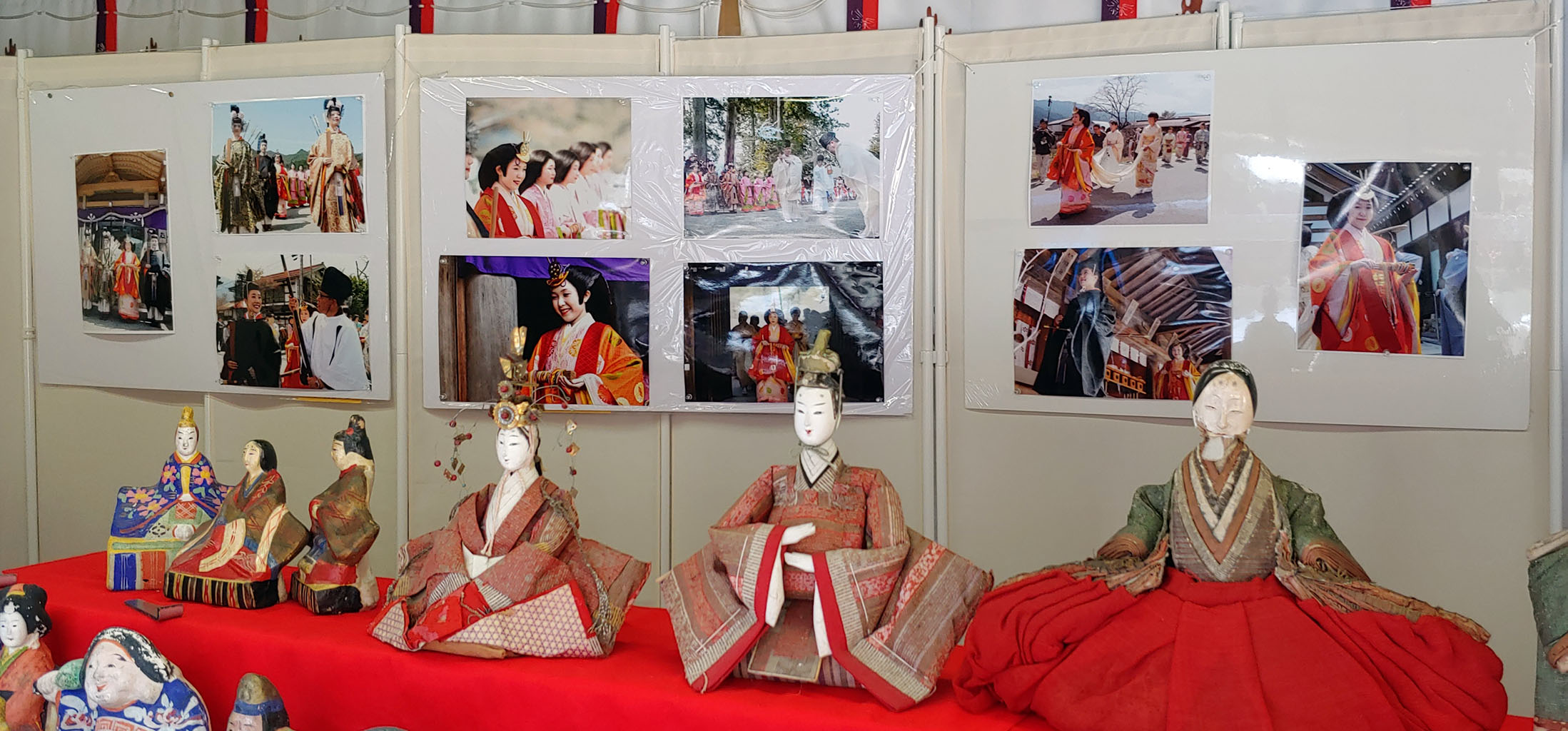 시작하기 전에 한 바퀴 돌아봅니다. 한 구석에 이전 이키비나 축제의 사진들이 있네요. 이번엔 어떤 분이 이키비나를 맡게 될까요? 앞에 있는 히나마츠리 일본 전통 인형들은 은근히 무섭습니다.