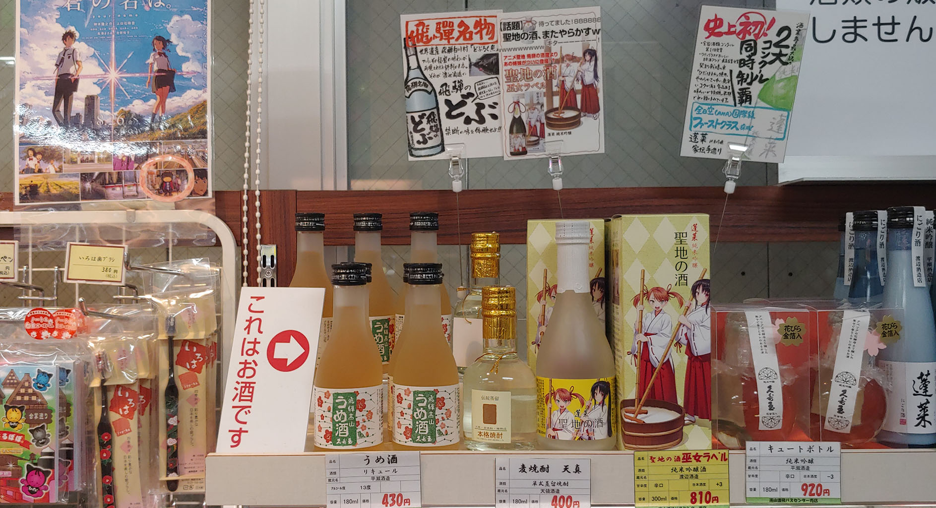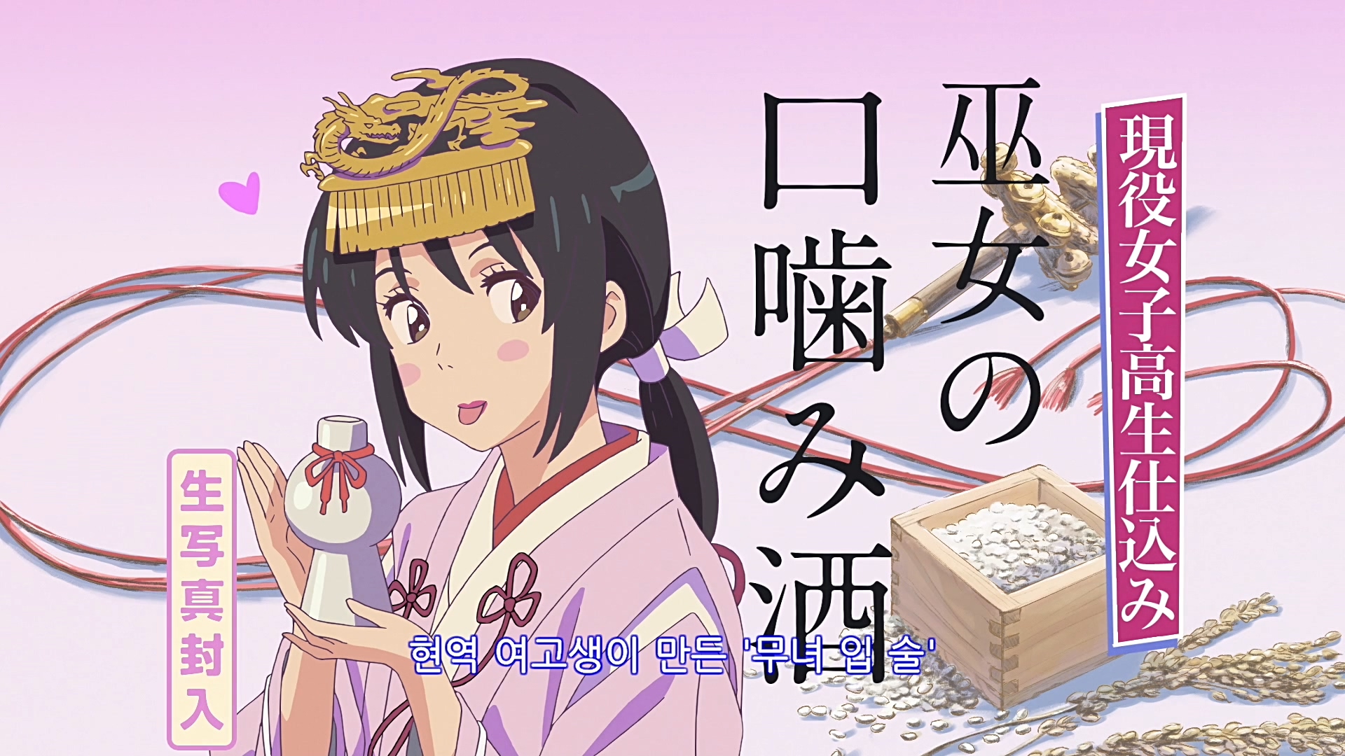 오 이런... 이 사람들 결국 저질렀군요. 너의 이름은의 미즈하 자매와 비슷한 캐릭터가 있는 무녀술이 있습니다. 다행히 라벨을 보건대 미인주-쿠치카미자케 방식으로 만들지 않은 것이 일말의 양심일까요?