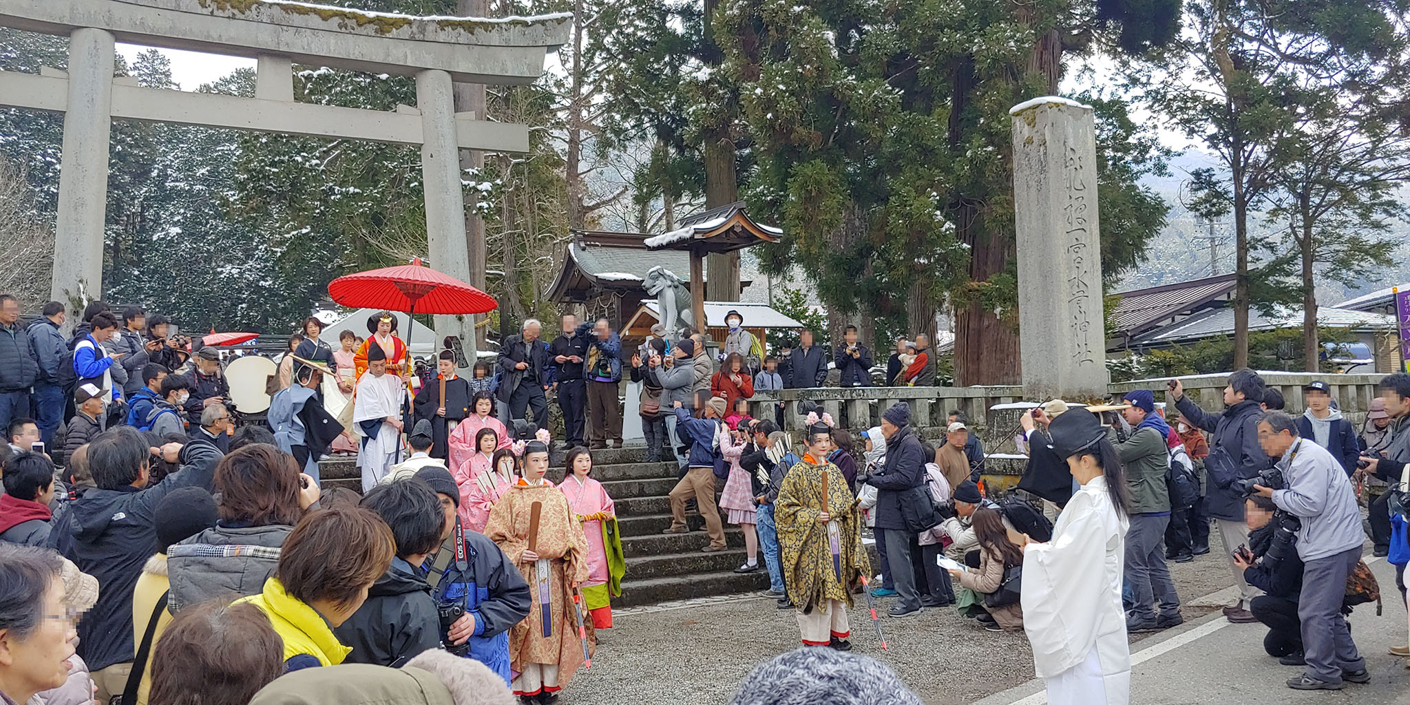 신사에 도착해 토리이 아래서 다시 한번 SUPER 촬영 TIME~! 이외에도 중요 포인트마다 멈춰서 찰영 타임을 중간중간 가지면서 행렬을 진행했기에 짧은 루트지만 거의 한 시간이 쓱 지났네요.