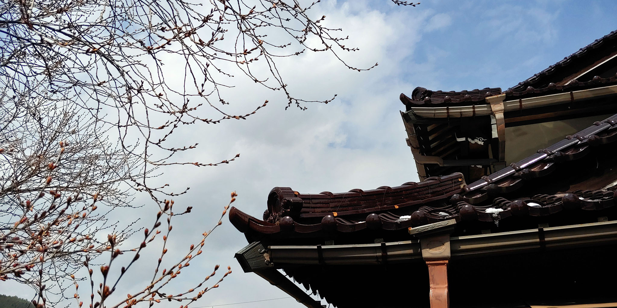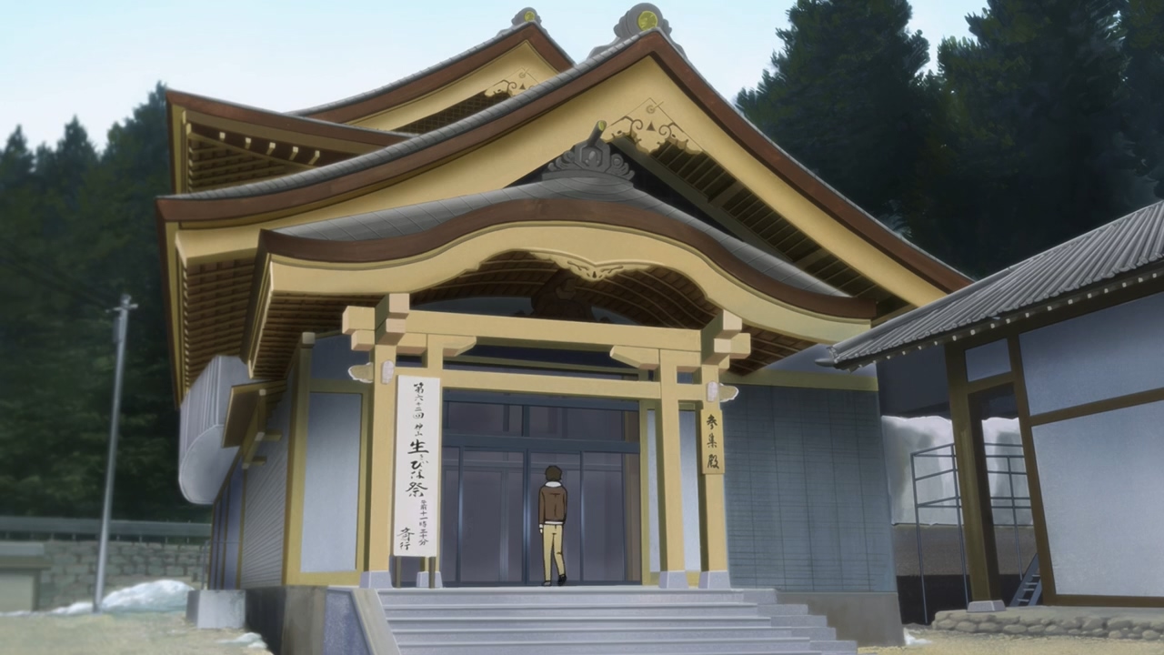 오는 도중에 눈이 오는 것을 보다시피 여긴 아직 손이 얼 정도로 추워서 벚꽃도 아직 꽃망울만 생긴 것을 볼 수 있습니다. 빙과 애니메이션처럼 이때쯤에 벚꽃이 흐드러지게 피려면 이상기후라 생각될 정도로 따듯해야 할 것입니다.