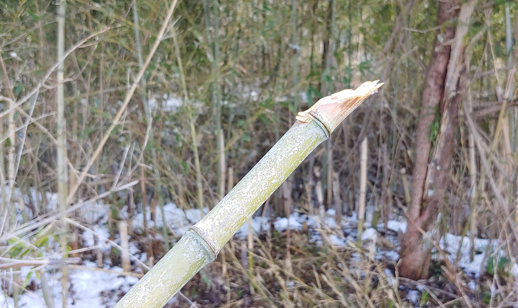 지나가다 죽창이 떨어진 게 있어 어렸을 적 추억과 함께 가지고 놀면서 걸어갑니다. 어렸을 때가 아무래도 더 잘 휘둘렀던 거 같아요. 풍차돌리기, 8자 돌리기며 해보다가 바람에 언 손이 고통을 호소해 놓아주었습니다.