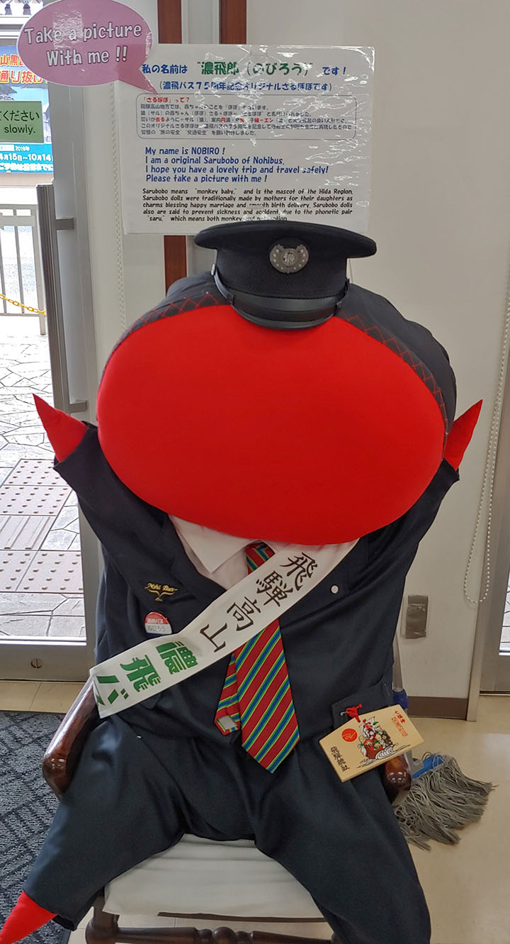 역에서 멍 때리다가 기차를 타고 타카야마에 도착해 잠시 역의 기념품점을 물색합니다. 이전엔 신경도 안 썼는데 이젠 기념품을 줘야 하는 사람이 늘어나서 여행 갈 때마다 늘 고민입니다. 이 지역엔 여기 도착하자마자 봤던 사루보보라는 인형이 주력상품입니다. 어머니가 딸에게 이것저것 기원하며 주는 선물이었다더군요. 그리고 가격이 상당한 '끈' 기념품이 있는데 그건 내일 이야기하기로 하...