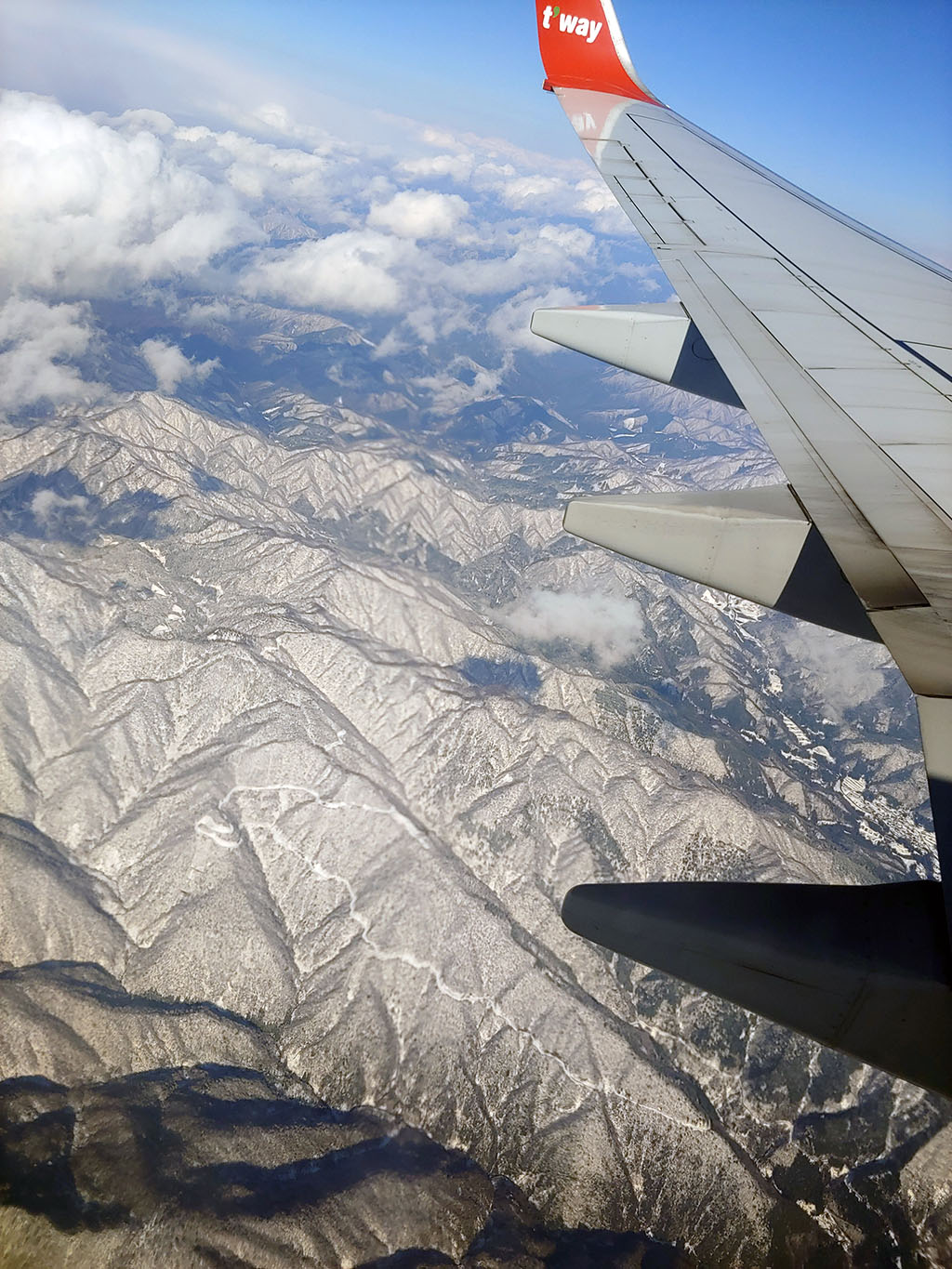 비행기로 나고야에 거의 도착하기 전 보인 눈이 앉아있는 산들. 4월 초입입니다만 아직도 눈이 남아있습니다. 생각해보니 이번에 갈 타카야마마을은 직역해보면 높은 산 마을이네요. 옷을 생각보다 덜 따듯하게 가져왔는데 괜찮을는지 걱정되기 시작합니다.