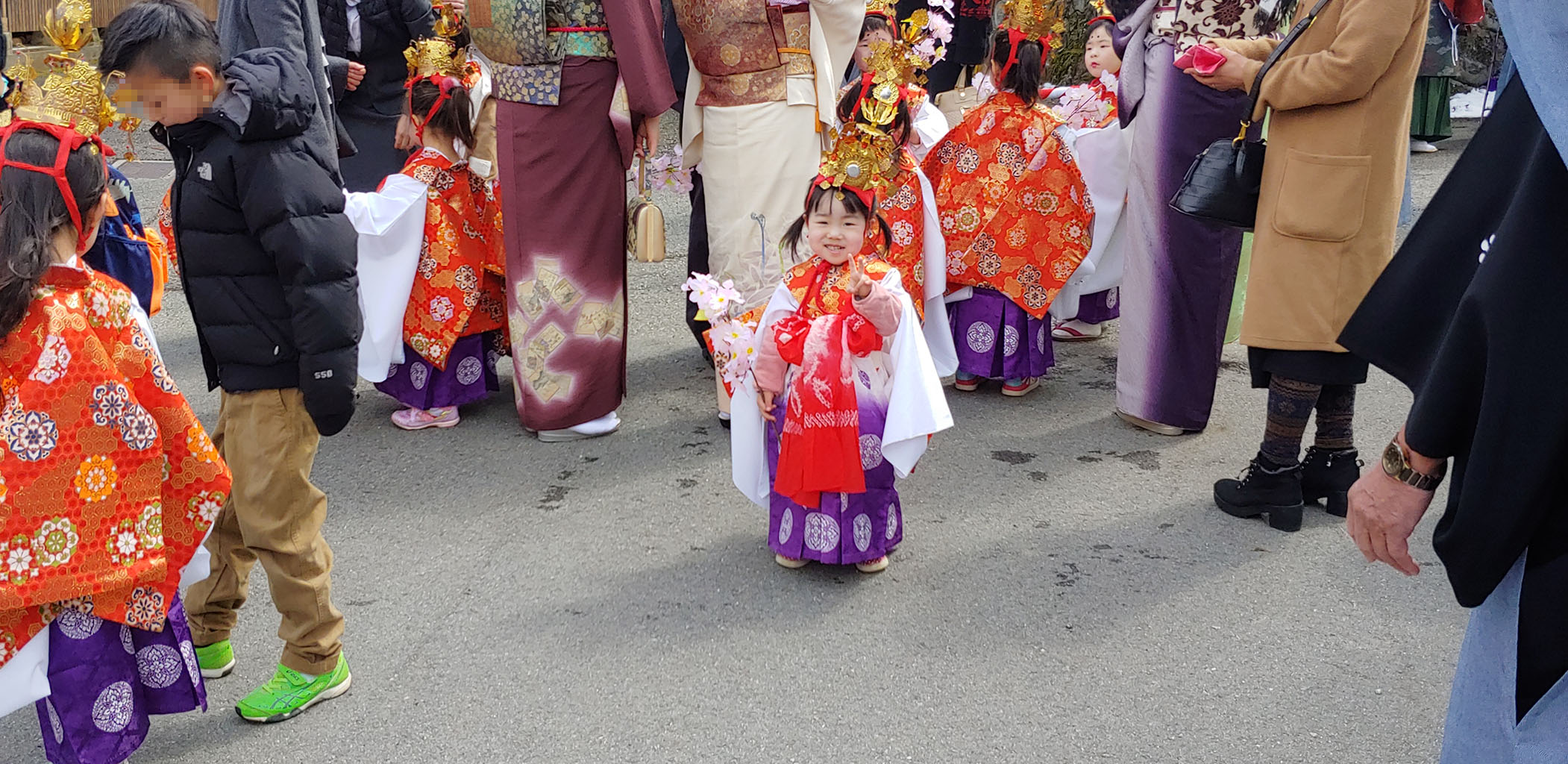 아무래도 시치고산과 관련된 것이라 그럴까요? 어린아이들도 분장해서 부모님과 함께 이키비나 행렬에 참가합니다. 행렬 이후 나중에 신사 안에서 무슨 의식을 한번 더 진행하는 것 같더군요.