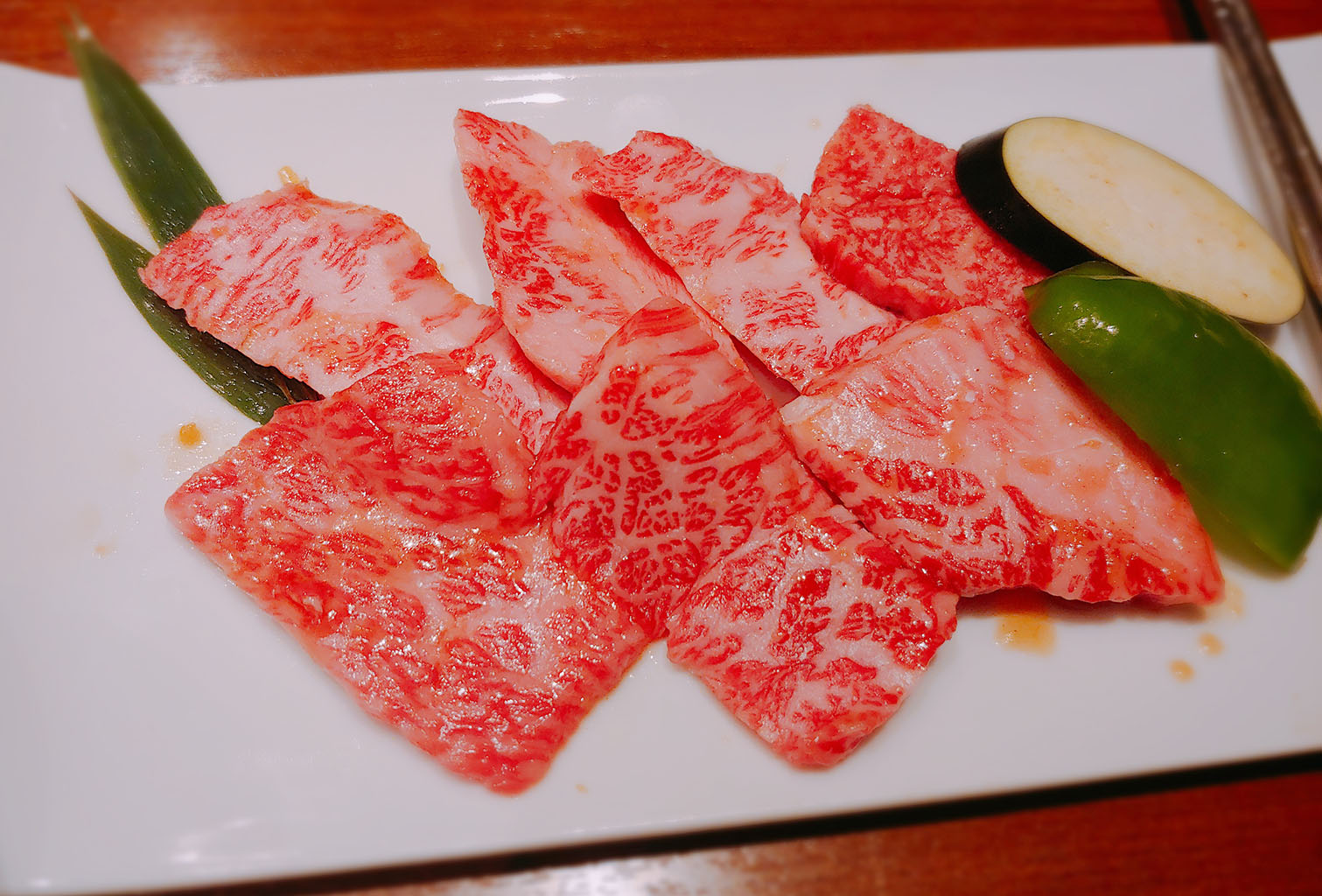 고기와 같이 시킨 샐러드 밥 된장국 세트. 이렇게 보니 고기가 몇 점 되어 보이지는 않는데 윤이 나는 것이 미칠 지경입니다. 요즘 운동한답시고 단백질을 외치느라 일부로 낮은 등급 고기만 먹었는데 이런 마블링을 오랜만에, 아니 이 정도로 지방이 촘촘하게 박힌 것은 처음 봅니다.