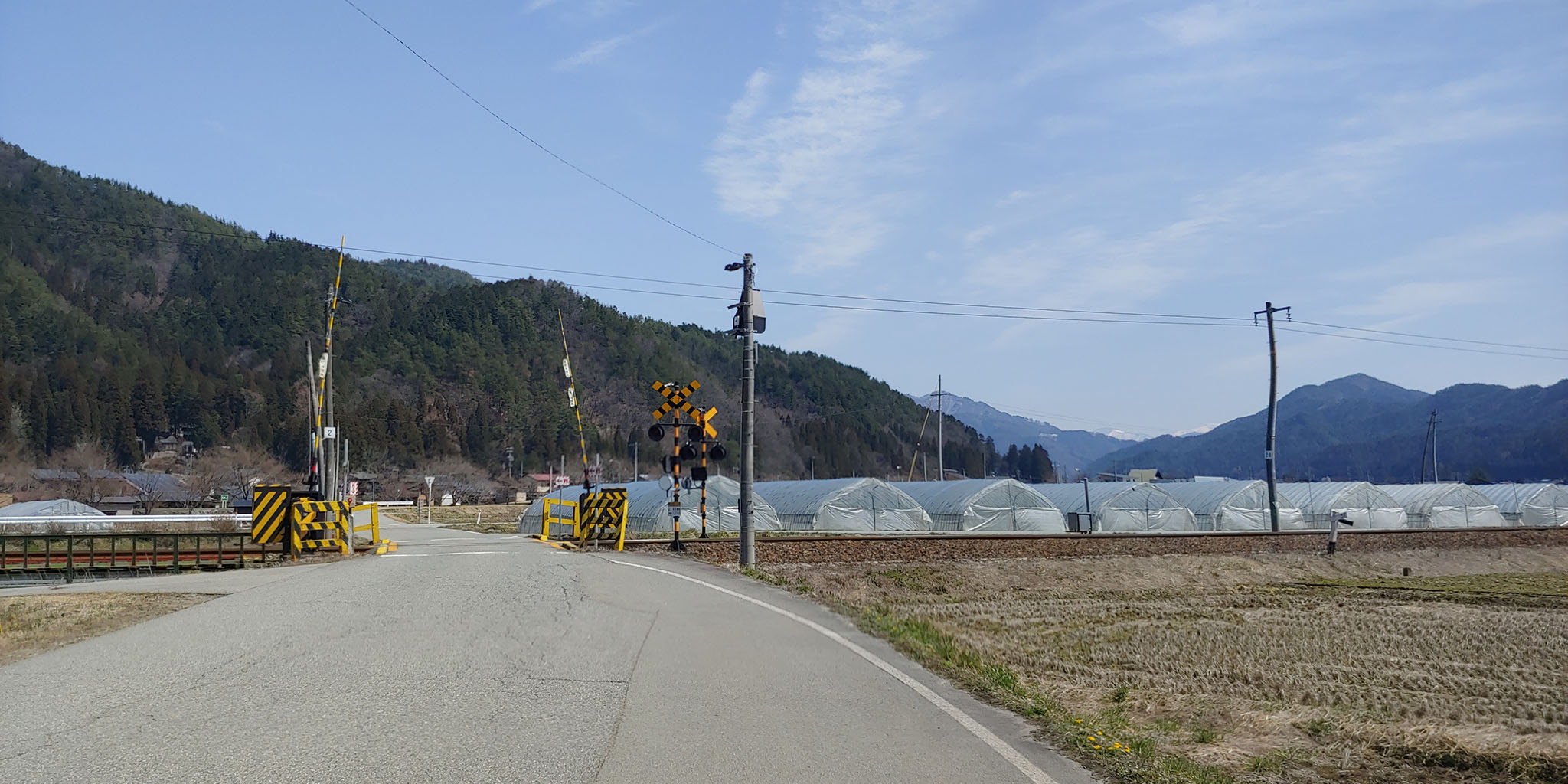 그동안 지겹게 시골시골 했지만 이제 정말 논밭만 보이는 경계에 도달했습니다. 그렇지만 아직도 그 건널목까진 거리가 반 정도나 있군요.