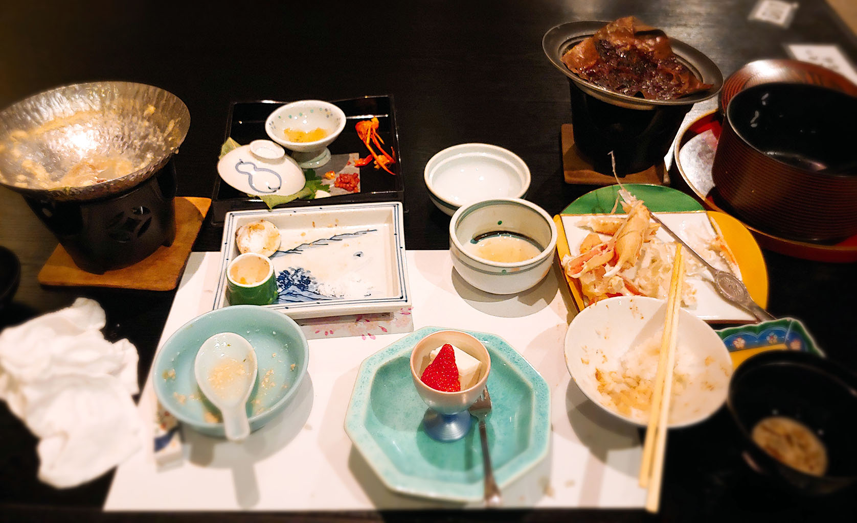 목욕하자마자 오늘 저녁 만찬을 즐기러 가봅니다. 예약할 땐 영어로 가이세키 형식이라 적혀있는데, 가이세키라고 하면 보통 생각하듯 방 안에서 음식을 먹는 건 아니고 식당에서 한상 차려진 음식을 약간의 서빙과 함께 먹는 방식입니다.