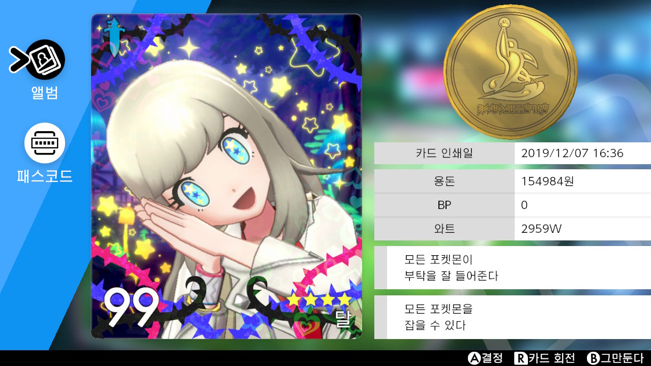 그리고 다시 한번 과거를 청산했습니다. 결국 이렇게 평범하게 귀여운 방순이로 정착했습니다. 스토리 클리어도 했으니 당분간 안 바꾸려나요? 아무튼 포켓몬을 잡고 다니는 것보다 옷 꾸미고 리그 카드 찍는 게 상상 이상으로 재밌었습니다. 나중엔 새로운 옷과 포즈를 언락 하기 위해 스토리 진행하고 있었습니다.