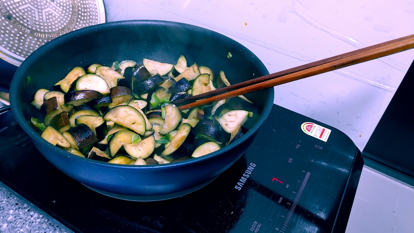 혼밥인데 가지를 두봉다리 세일로 6개나 사놔서 저녘에도 마파가지가지덥밥이 될 예정입니다