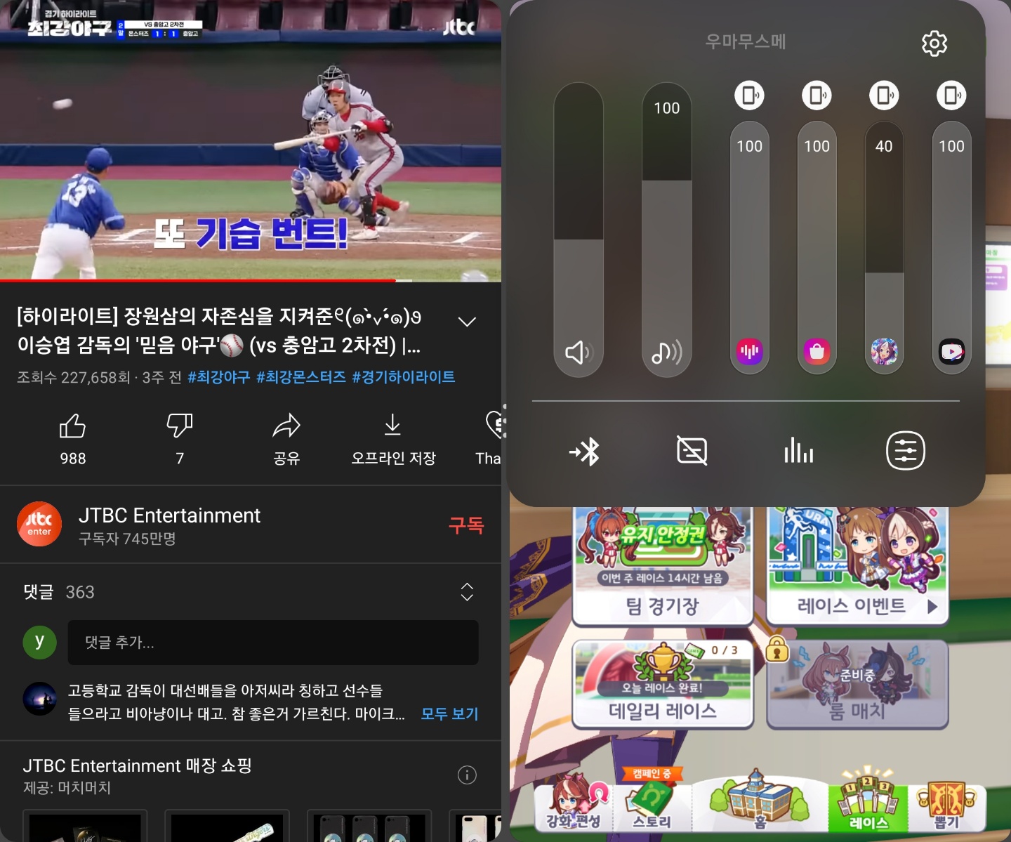 하지만 개발자 중에 게이머가 없었는지 멀티 태스킹 중 개별 앱 소리 크기 조절 기능이 기본이 아니라니!