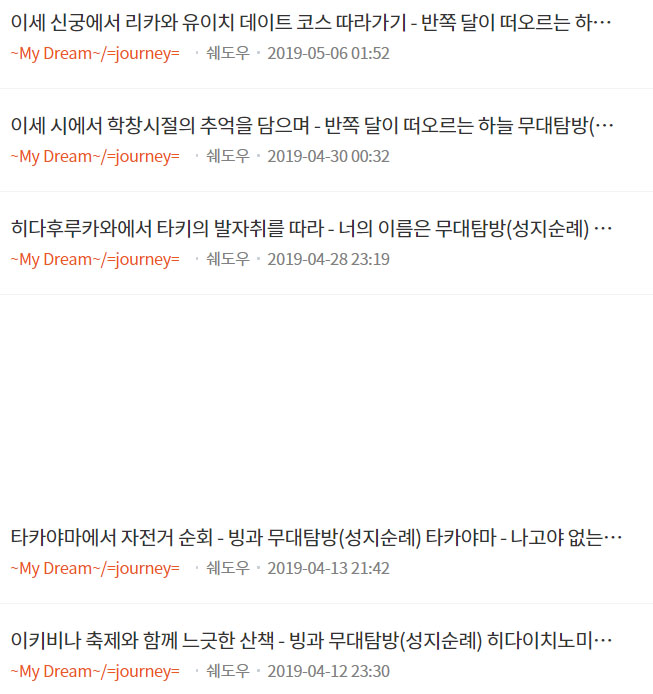 현재 엉망진창으로 깨진 스킨이나 글들을 다시 정리 중입니다. 300개를 뭐 한번에 복구하는 건 시간도 정신도 엄두가 나진 않지만, 천천히 그 당시 6년간의 추억을 떠올리며 다시 정리해 봐야겠네요.
