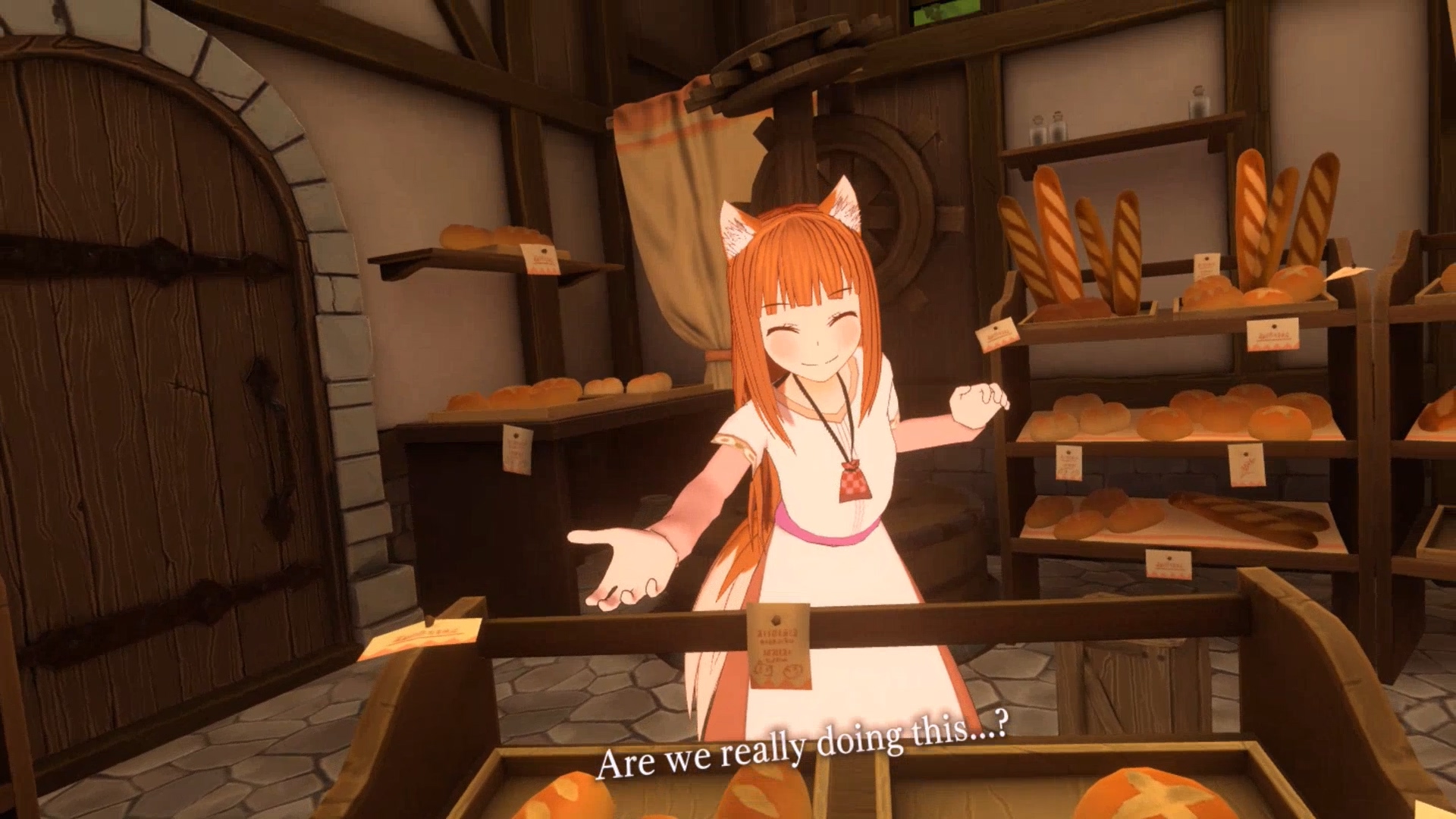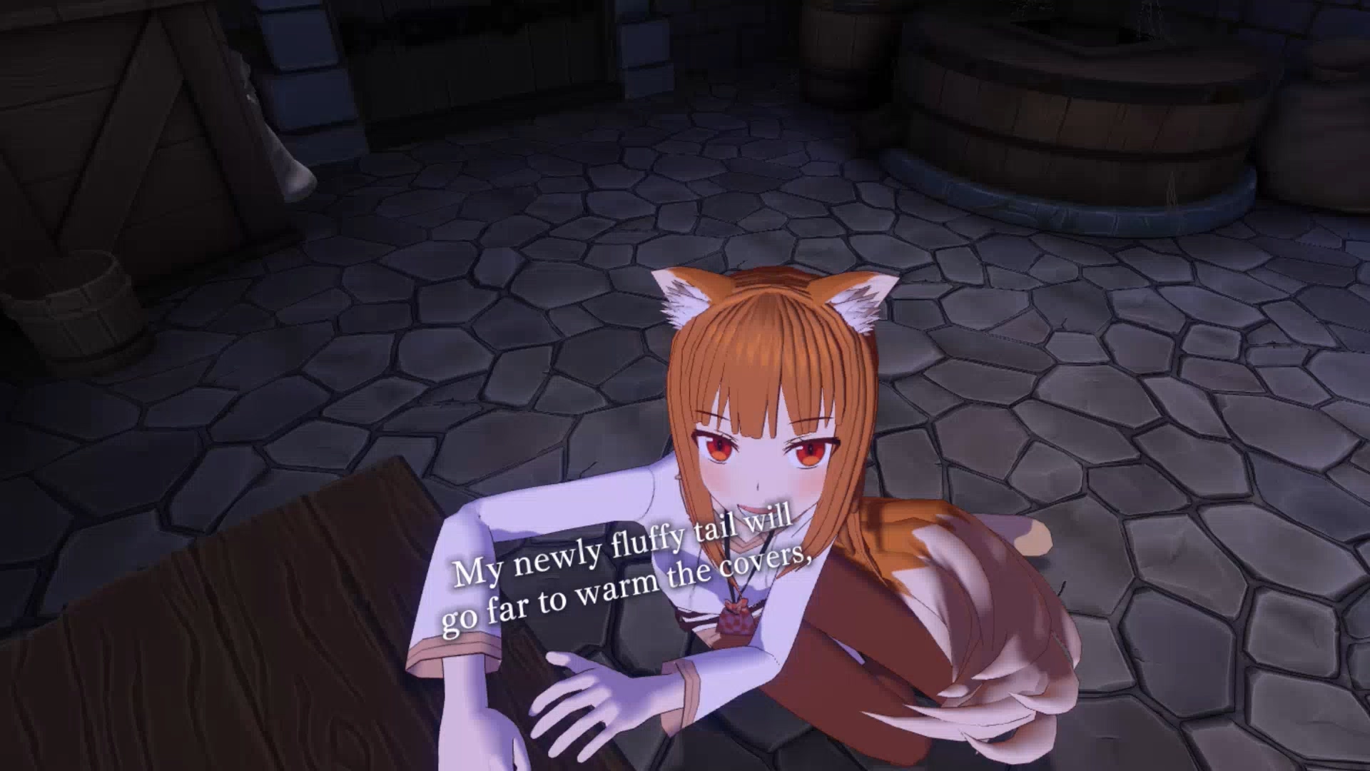 좁은 창고가 넓은 마당마냥 이리저리 움직이며 바로 옆에서 수다를 떠는 둘을 바라보면 참 재밌습니다. 네 둘이요. 게임들을 살펴보면 플레이어=주인공을 위해 주인공의 목소리를 없애는 게임들은 동서양 불문하고 많습니다. 그래도 전 목소리가 있는게 좋지 않을까 했는데, 이 늑대와 향신료 VR에서 로렌스의 목소리가 나오니 아무리 시야가 우리 플레이어라도 생각 이상으로 괴리감이 꽤 있습니다.